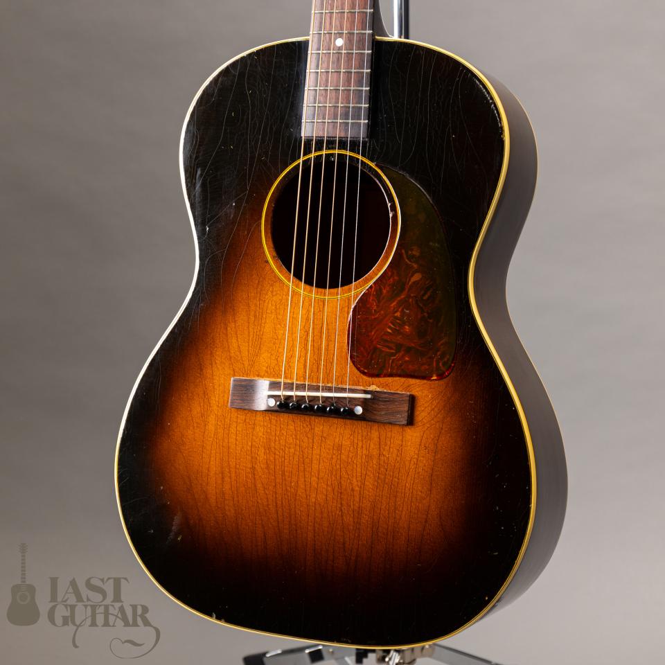 1950年代前期、渋いスモールガードのLG-2。味の出たサウンドは堪りません。当店入荷後にネックリセット済みで演奏性も良好です。