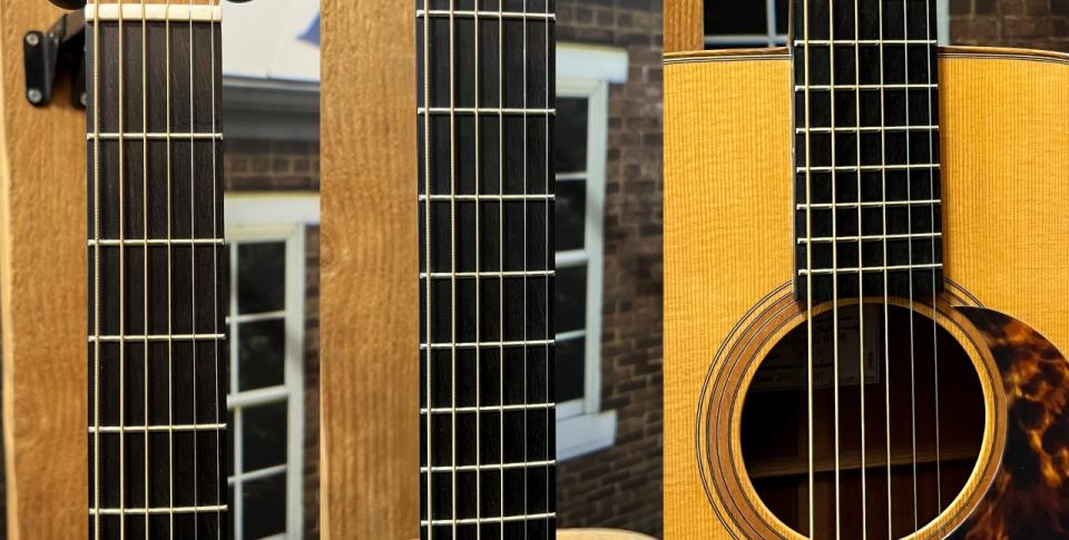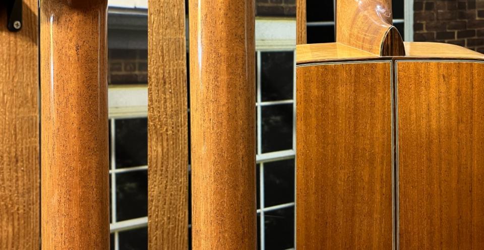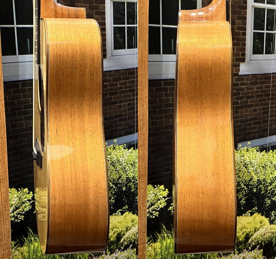 表板にスプルース材、側板・裏板にはマホガニー材を使用、マホガニーネック、エボニー指板・ブリッジという仕様になります。