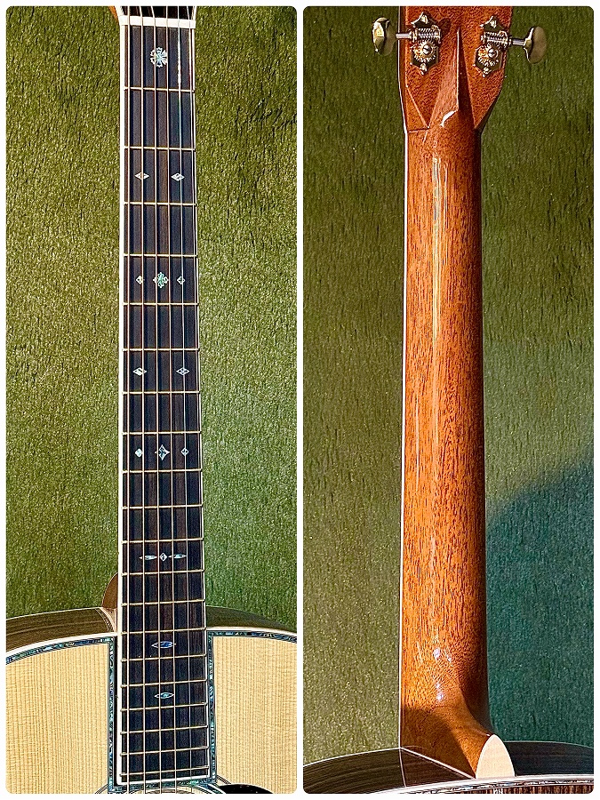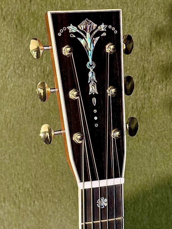 ヘッドにはアバロン貝によるトーチインレイが鎮座し、まさに王者の風格をまとった一本と言えます。