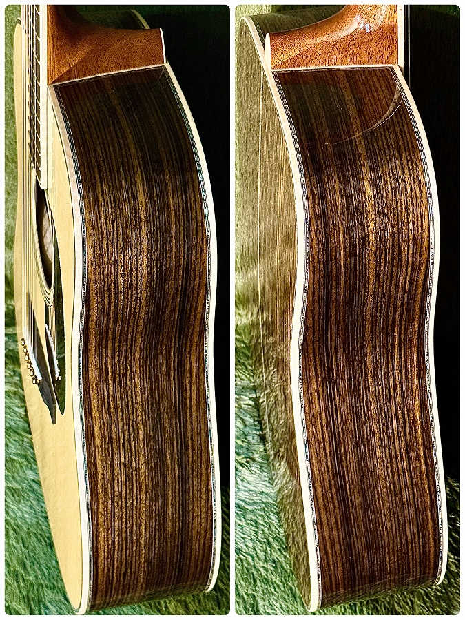 ルックス面ではサイド&バックのローズウッドの色味が濃く、黒々としたどっしり感のある材が使われています。