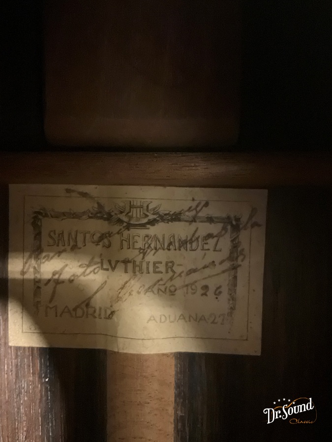 巨匠アンドレス・セゴビア(1893-1987)が若い頃にメインギターとして世界中の演奏活動で使用していたマヌエル・ラミレスのギター(1912年製)を実際に製作したのがサントス・エルナンデスと言われています。