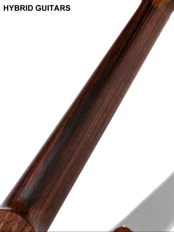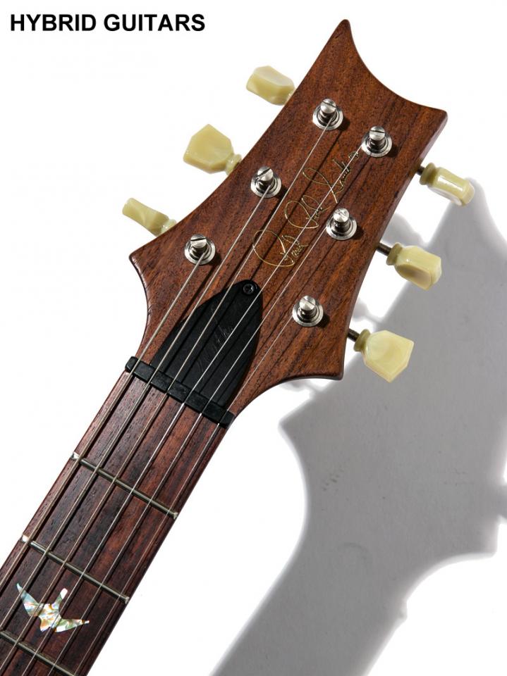 本機はボディトップに美しいFigured Mapleボディバックは1P-Mahogany、ネックに1P-Rosewoodを使用しています。McCartyはCustom24やCustom22よりもボディーが厚く設計されています。そういった設計も相まって、いままでGibson Les Paulをお使いだった方にはCustomよりもMcCartyのほうがしっくりくるという方も多いかと思います。ピックアップにはPRS McCarty Setを搭載し、トーンノブのコイルタップスイッチによりシングルコイルサウンドでのプレイが可能です。ペグにはロック機構を備えたGotoh H.A.P マグナムロックを搭載しており、軸の高さが設定できるためナットにかかる弦プレッシャーを各弦ごとに適正なテンションに調節でき、理想の弦振動を得ることができます。