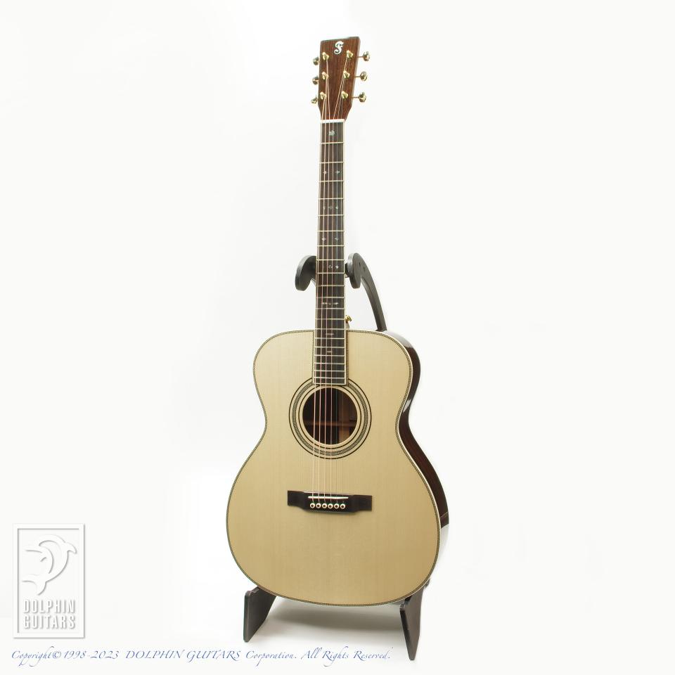 その他:43mmナット幅、647mmスケール、牛骨ナット&サドル、スキャロップドXブレーシング、スタイル42スノーフレークアバロンインレイ、ヘリンボーンロゼッタ&パーフリング、エボニーヘッドプレート。