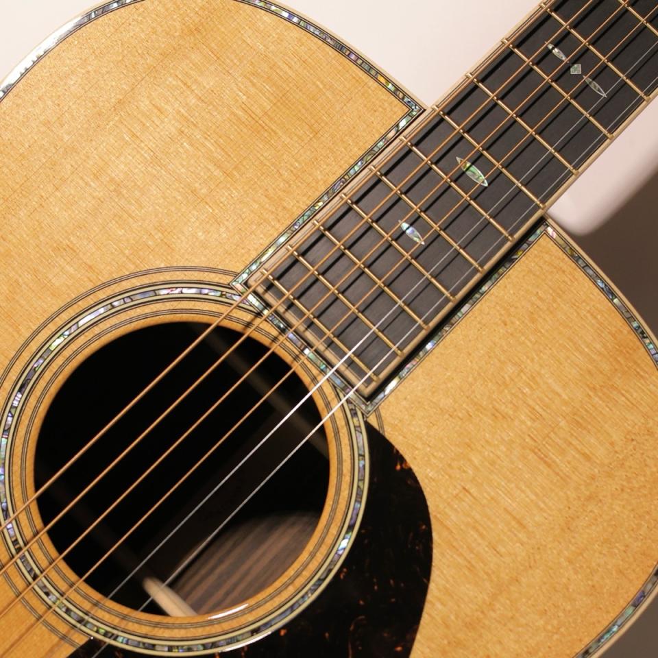 Martin D-42 Modern Deluxeを手にした瞬間、まず感じるのは“ただの高級ギターではない”という確かな違いです。ケースを開けた時に目に飛び込む、この個体特有の小麦色のスプルーストップはヴィンテージギターのような風格、アバロンで縁取られた気品ある佇まいは、所有する喜びそのもの。しかし本当の体験は、最初の一音を鳴らした瞬間から始まります。