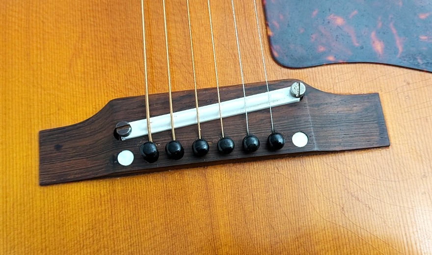 ペグはシングルラインの白ボタン3連クルーソン。