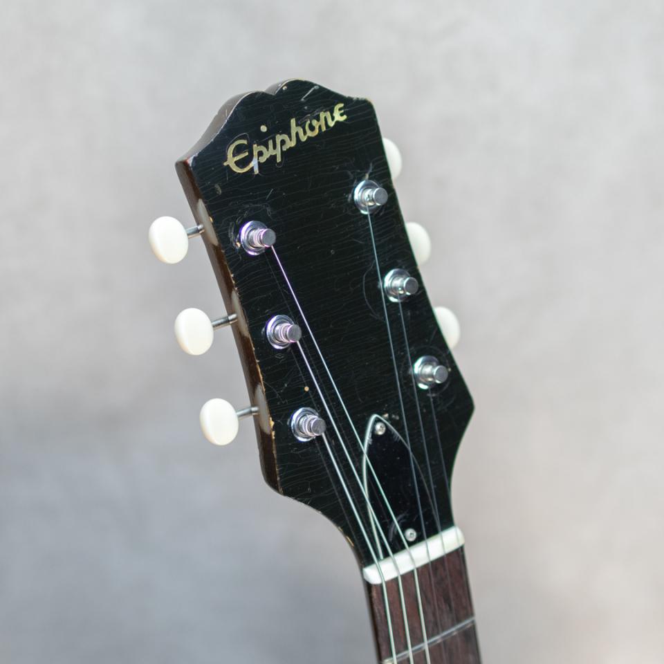 ギリシャ系移民の一家によって始まったEpiphone。20世紀の初めにマンハッタンに居を構えた一家は、マンドリンを始めとした楽器の製造・販売・修理業を住居兼工房の建物で経営し始めます。家業を受け継いだ長男のエパミノンダスは1928年に社名を現在のEpiphoneに改名。1930年代、ブームがバンジョーやアーチトップギターと変遷していく中、ライバルのGibson社としのぎを削りながらも両社は名声を大きくしていきます、しかし大戦中に生産体制に大きくダメージを受けた同社は、その後労働争議等も経て経営的に大きく落ち込む低迷期へと突入。50年代初頭に工房と深く所縁のあったレス・ポール氏はEpiphone救済をGibsonのテッド・マッカーティに進言。1957年同社はGibson傘下となり、翌年には新しいラインナップが展開され新たな道を進むこととなりました。
