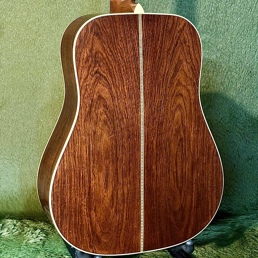 カリンとしていながらも音の芯が太く、強く弾けば弾くほど潰れずにしっかりと反応が返ってくる。誰しもが憧れるD-28の音では無いかと思います。