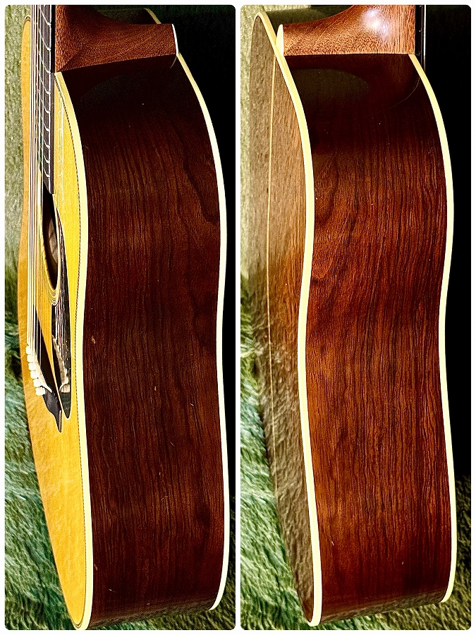 渦巻く豪快な板目がとにかく目を惹く印象。地鳴りのように鳴り響くサウンドはまさにD-28の最高到達点と呼ぶに相応しい圧巻の音色です。