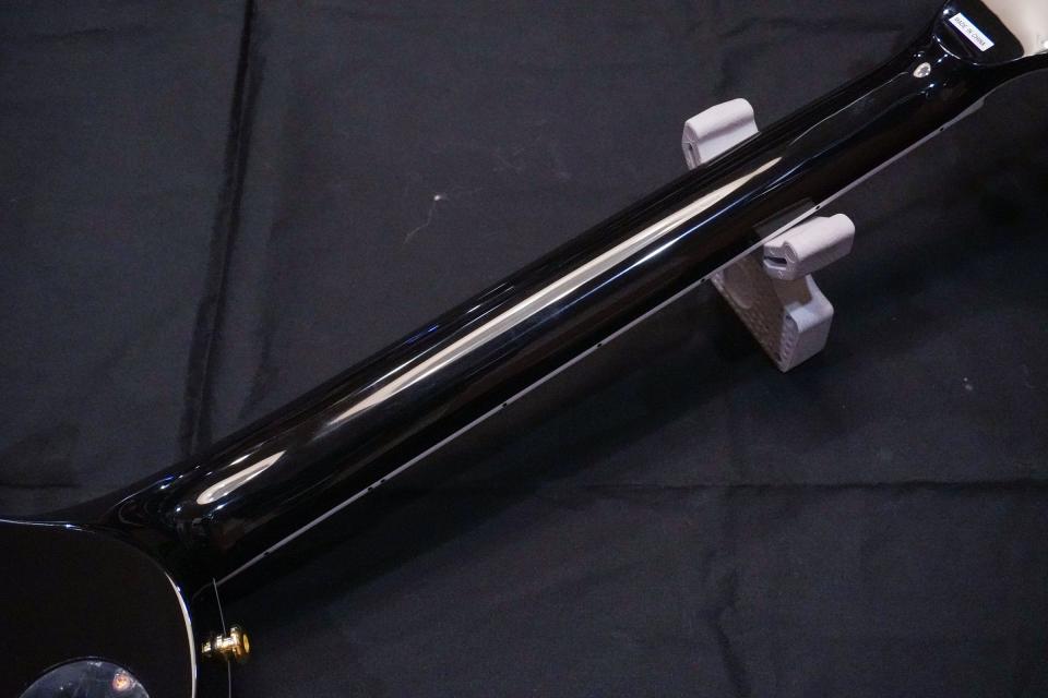 マホガニーネック、エボニー指板。フレットはジャンボタイプの22フレット、スケール628mm。