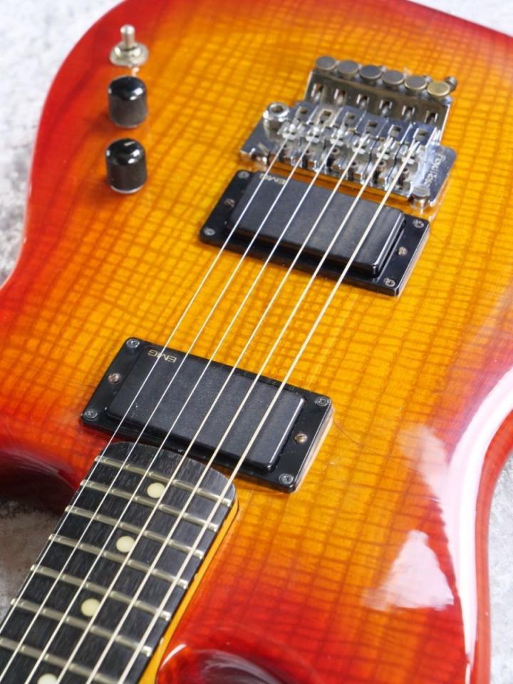 フレイムアッシュボディにフェンダーヘッド、そしてHHレイアウトなど、珍しい仕様が満載の初期モノでございます。この機会に是非ご検討下さいませ。