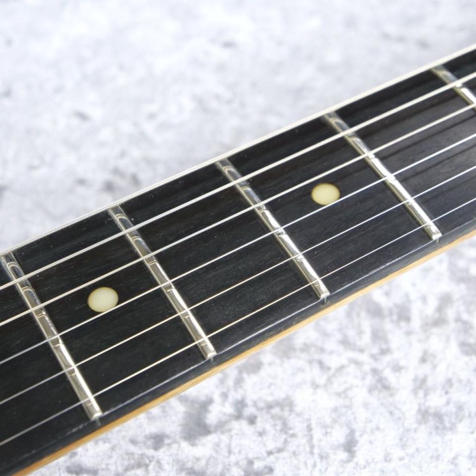 フレットは何度かすり合わせがされているようで、残り12フレット付近で0.8~0.9mm程度の残量で、大きく減ってしまっている箇所もございますが、目立った音詰まりは無く、現状でも演奏には支障はない状態でございます。