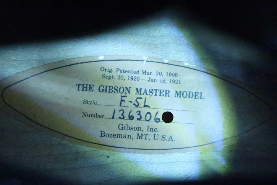 在庫一覧 Gibson F-5L Master Model / One Owner Collection・Fern Head Inlay・ Solid Spruce Top・Solid Flamed Maple Side and Back・Flamed Maple Neck・Script Inlay Logo・Gold Original peg・Ebony Fingerboard・Cremona Burst Lacquer Finish【With Glass Original Case】 1991年
