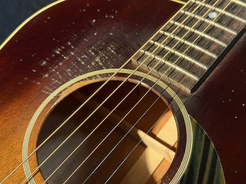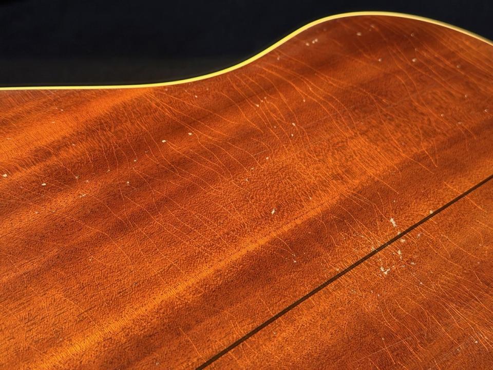 Gibson主導の限定シリーズGreatest Hits Vol.ⅡからMurphy Lab Light Aged仕上げのオールマホガニーJ-45が登場!実際に1940年代前半には材不足により同仕様のJ-45が存在しました。バナー&スクリプトロゴ期でファイアーストライプのスモールガード、19フレット仕様。びっしりと入ったウェザーチェックとサウンドホール周りのピックスクラッチによる塗装剥げもリアルな演出がなされています。
