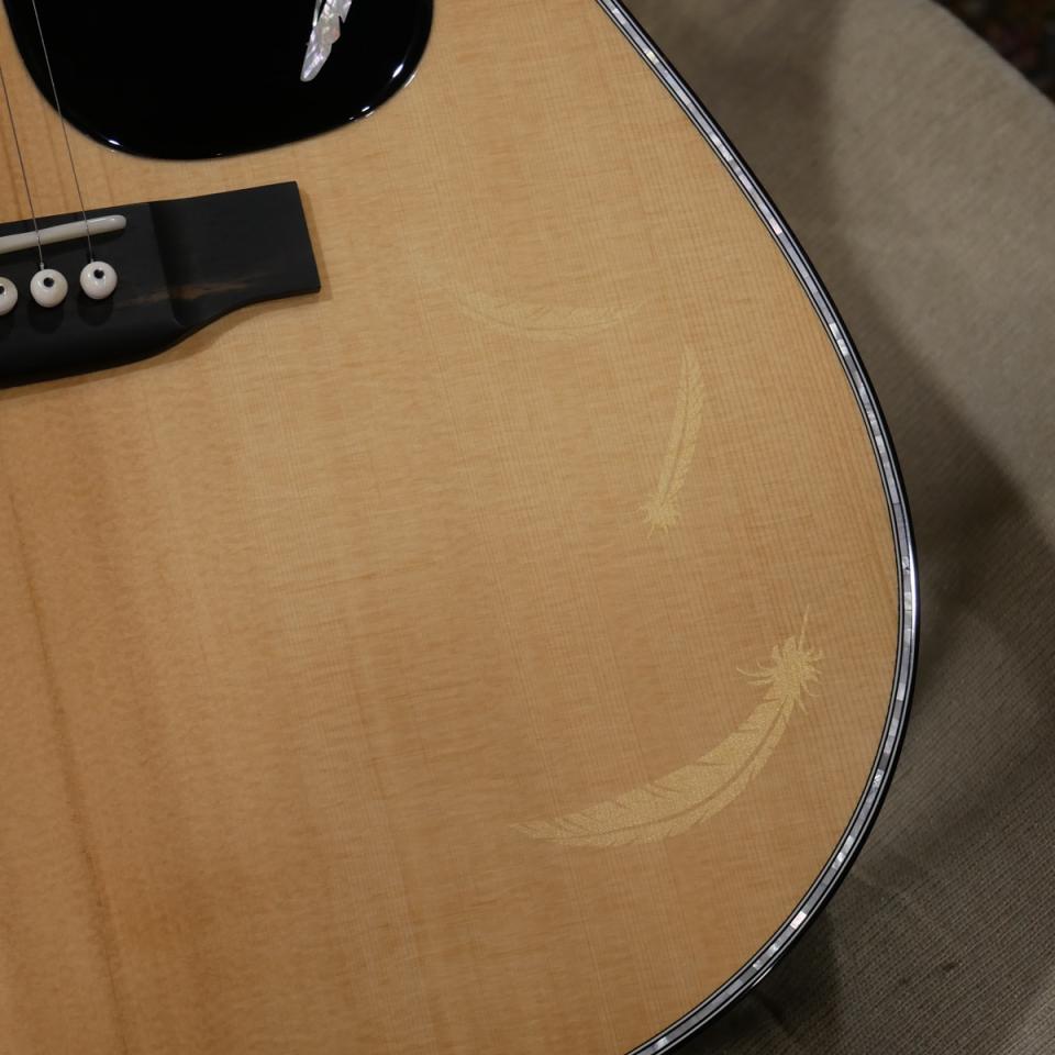ボディトップにはホログラフィック塗装で金色のイーグルの羽を表現。ボディトップの80’s シトカスプルースの色味と相まって角度によって見え隠れします。