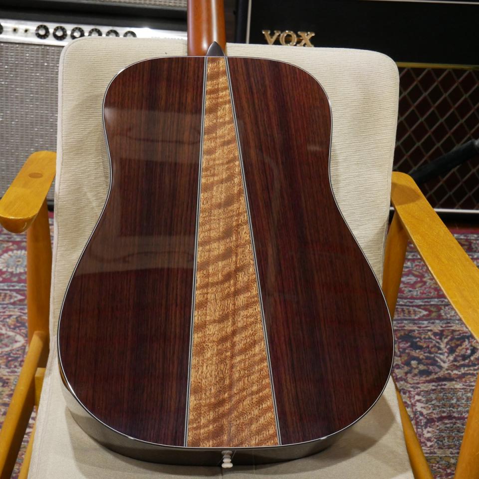 伐採してから40年以上の時を経た80’s シトカスプルースと、上質なインディアンローズウッドを組み合わせ、さらに本モデルの個性として、ボディバックセンターにプレミアム・フレイム・マホガニーを使用しています。