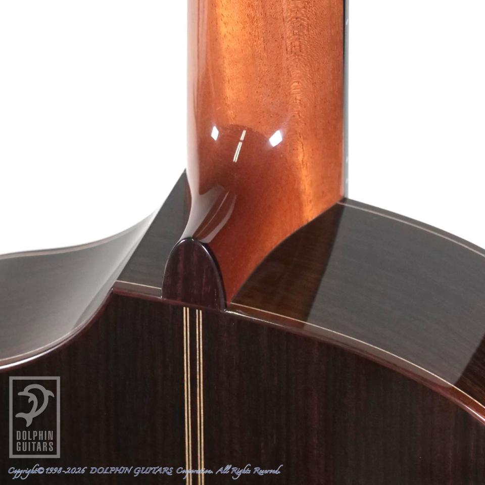 トップのシダーはスタッフが久留米の工房を尋ね、中でも色の濃いダークでビターなチョコレートカラーを厳選したものを採用しました。シダー&ローズの甘くダイナミックなサウンドも心地良いギターです。