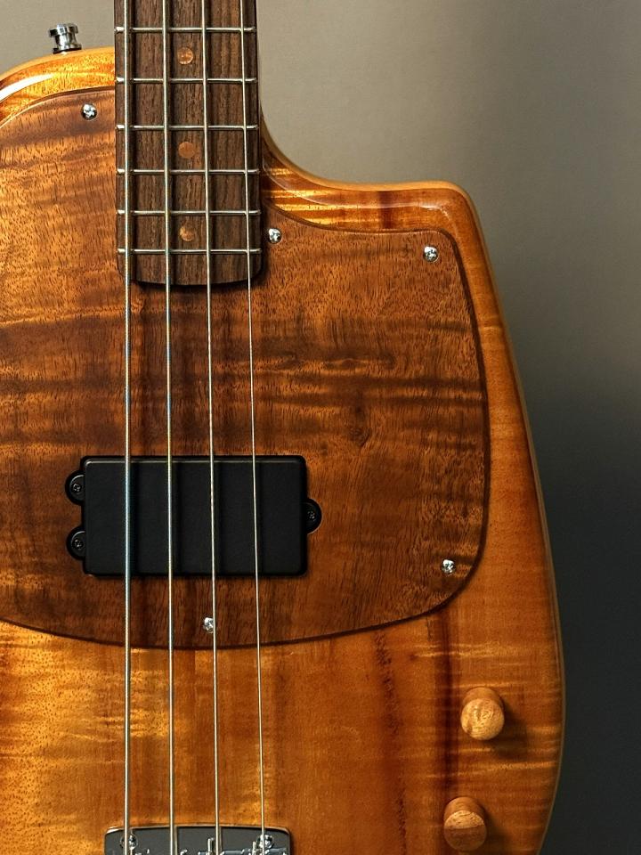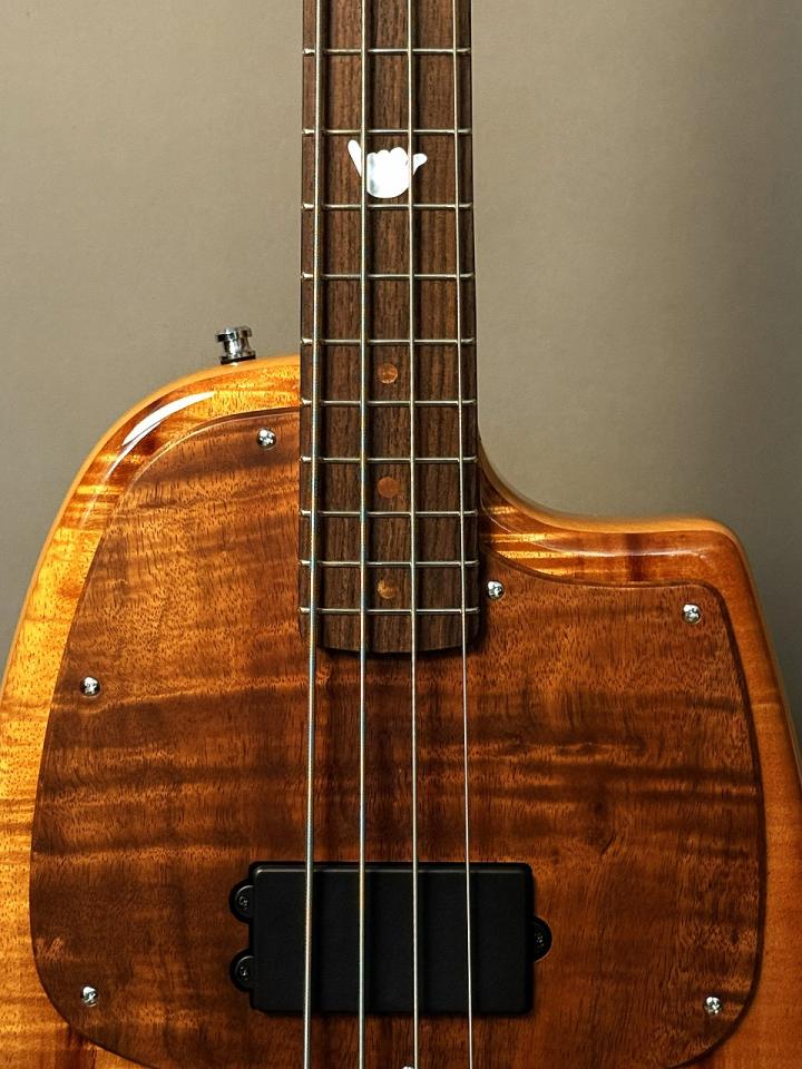 【Hawaiian Koa】を贅沢に使用した飽きのこない落ち着きのある仕上がり、指板装飾には【SHAKA】マーク、ネックとボディをボルトオンして止めるプレートにはAlohaBlossom × YU NAGABAデザインの【カメハメハ大王】を使用、南の風を満遍に感じられるBASSと言う名前の極上の工芸品、実用的なコレクションアイテムの完成です‼