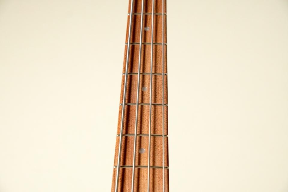 アルダーボディにメイプルネック、モラド(ボリビア・ローズウッド)指板と、基本的にはトラッドなJBタイプを踏襲した仕様となっております。