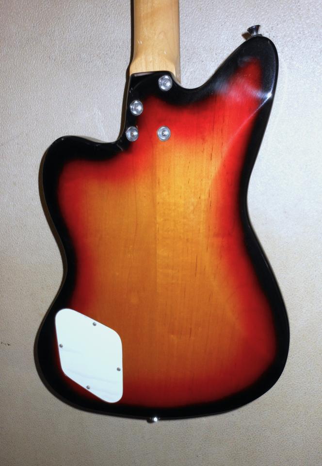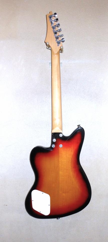 不思議なワンアンドオンリーなギターです。メイドインジャパンのオリジナルギターは貴重品です!ボディはアーチド加工、バックもコンター加工が施されており、PUはP-90系のものが装着されています。ブリッジもローラータイプで、各所にこだわりがあります。ラッカー仕様のフィニッシュで、まさにワンアンドオンリーなギターです!見た目と違い、ひずみ系のサウンドが素晴らしく感じます。ソフトケース付