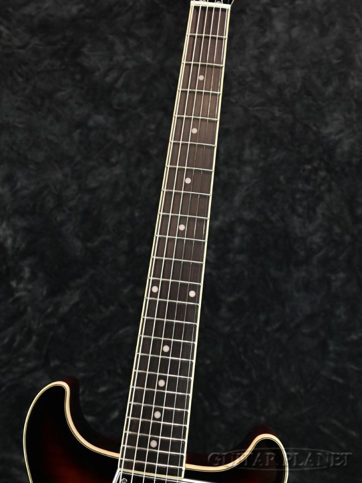 ローズウッド指板にはバインディングを施し、22F のミディアムジャンボフレットを装備、アクリル製のドットポジションマーカーインレイが施されています。