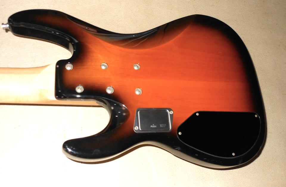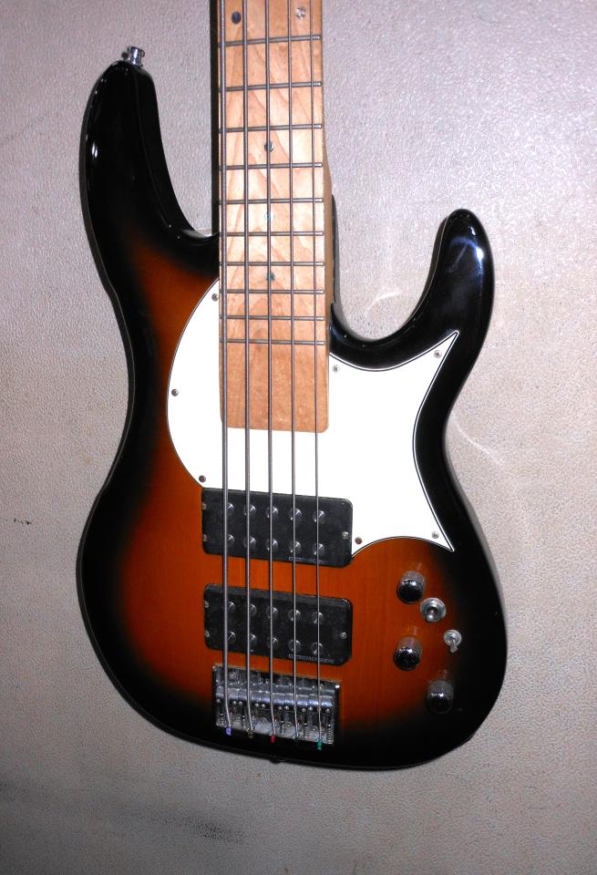 まだまだ綺麗な5弦ベース!ミュジックマンを彷彿させるルックスで、プレヤビリティーは抜群!バッテリーボックスのアイディアにも脱帽です。状態は問題ございません。ソフトケース付