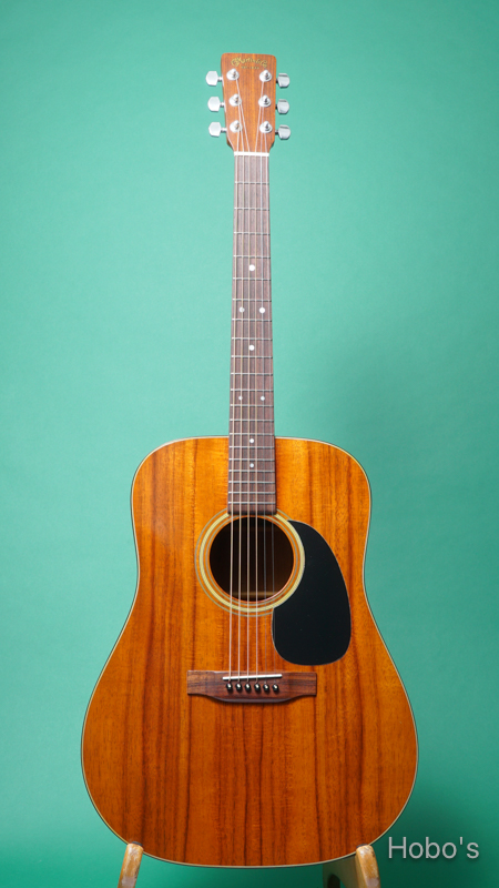 フレット及びサドルの高さにも十分余裕があり、ネックコンディションも良好です。ボディには軽微な小キズや打痕が年式相応に見られますが、クラックはございません。使用感はございますが、一見して比較的綺麗な外観を保ったコンディション良好な個体と言えるでしょう。オリジナル・ブリッジ、フィンガーボード、フィニッシュ。汎用ハードケースが付属致します。糸巻きはゴトー社製に交換済み。ピックガードは交換されておりますが、マーティンクラックはございません。その他ネックヒールキャップ部にストラップピン装着がありましたが、穴埋め補修済み。エンドピンジャック加工跡有り。当店工房にてネックリセット済み(それに伴いリフレット並びにナットサドル製作交換済み)。及びブリッジ溝修正を行なっております。