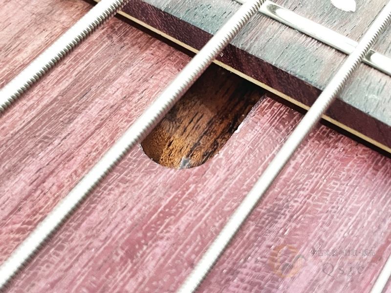 指板とピックガードにはパープルハート指板に散りばめられた桜のインレイがデザインされており、上から下までまさに"日本"と思わせるデザインです。