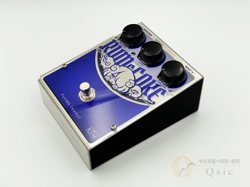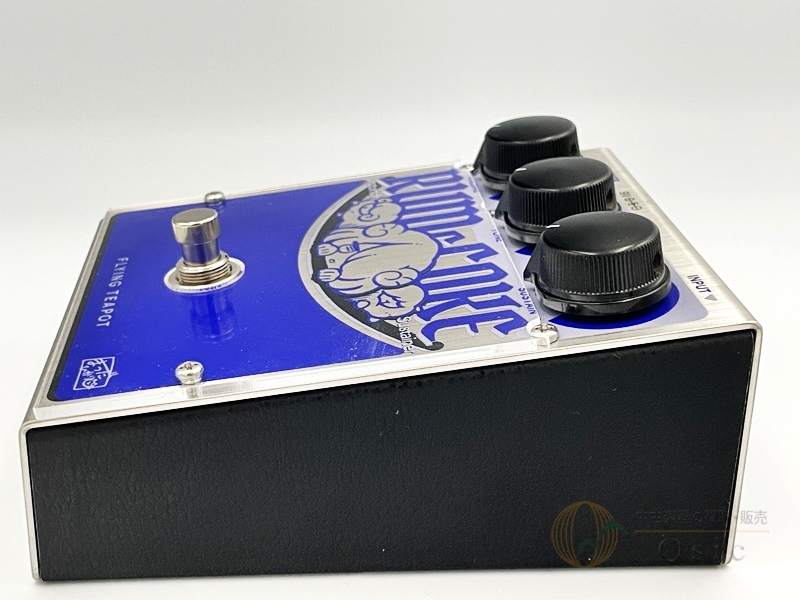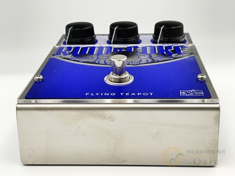この製品は国産ハンドメイドブランドflying teapotによって製作されたファズペダルで、印象的なキャラクターイラストとブルーの美しいカラーリングが特徴的な1台です。