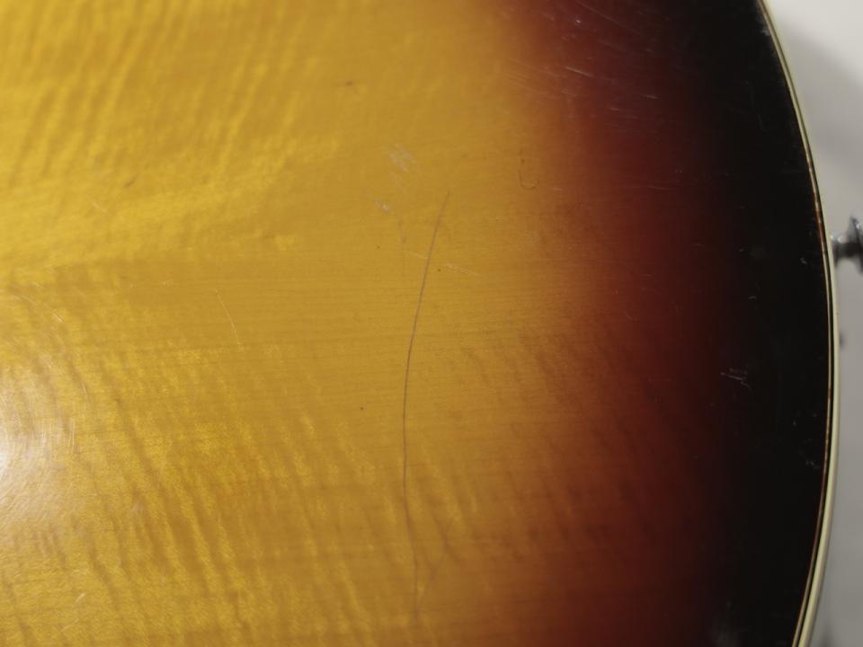 ボディトップのホール付近に線傷があります。木部の開きなどはございませんが、傷の深さの程度はわかりかねます。
