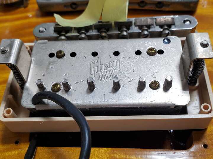 交換パーツ:PUがGibsonのものですが詳細不明です。ダーティフィンガーほどではないですが体感パワー強めです