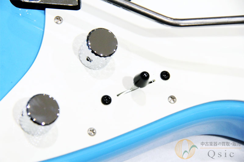 鮮やかなインフィニティブルーのボディにメイプルネック&指板という組み合わせはモダンぽさを感じるルックスです。