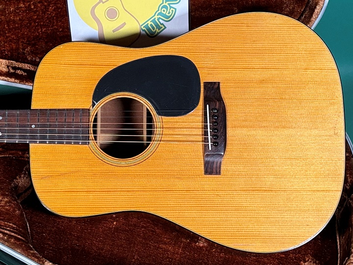 一説によると1980年代にはいるとフォークブームに陰りが見え始め、マーチンでは生産数量が大変少なくなって、そのぶん一本一本を丁寧に制作したため、音の質感が良いとも言われています。もちろん諸説ありますが、実際、この楽器も豊かで華やかに鳴ります。