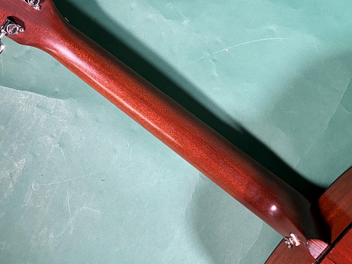 ナット部幅42.6ミリ程度で、やや太目のレギュラーグリップネックです。特にハイポジションは現在のマーチンに比較して太く感じるかも知れませんが、弾き易さにはそれほど影響はありません。