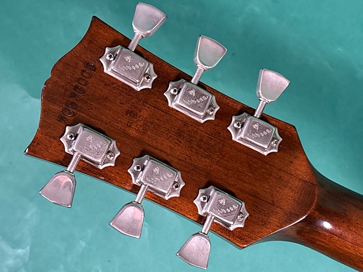 ペグはキーストーンノブ、GIBSON刻印のカバータイプで、動作はスムーズです。