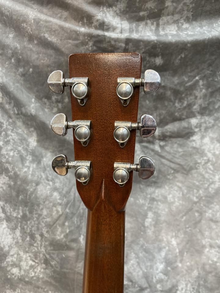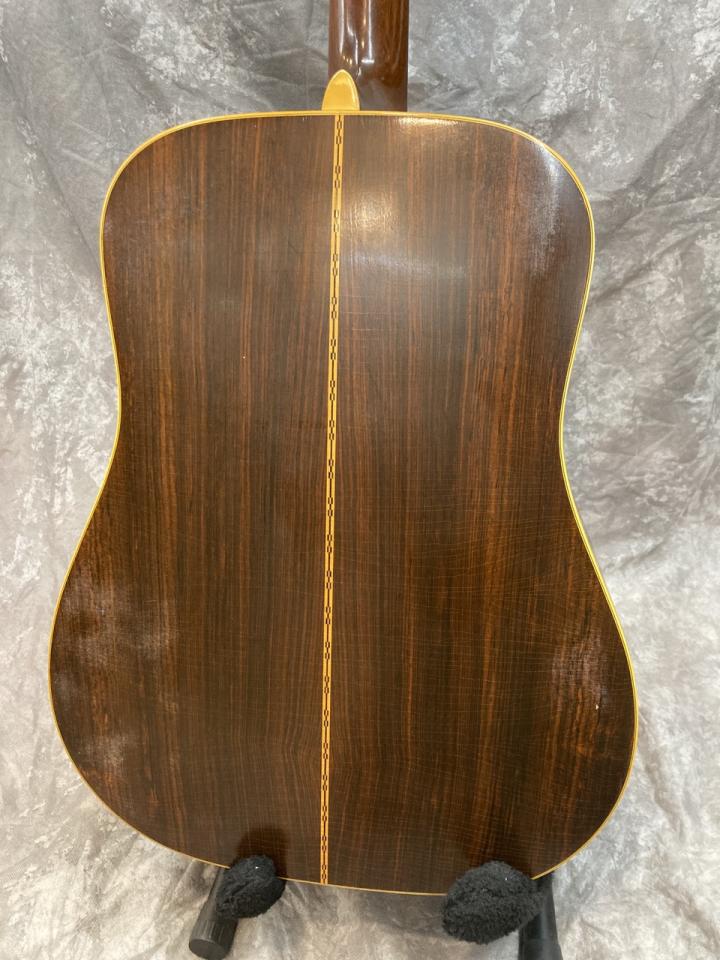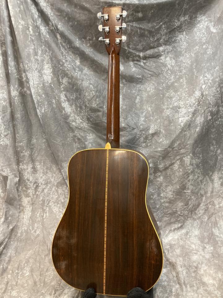 1975年製のD-28です。ブライトさと煌びやかさ、中低域のどっしりとしたパワフル且つ繊細なサウンドは、まさに古き良き70年代の楽器という印象です。ピックガードの張り替え、わずかにトップ起き等もなく、SQネックということもありトラスロッドは調整出来ませんが弦高もそこまで高くなくプレイヤーズコンディションです。