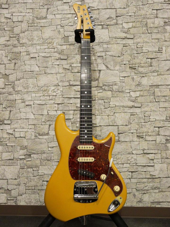 艶消しのような質感を持つ「Mustard Yellow」で仕上げられた特殊シェイプのアルダーボディ、22フレット仕様のエボニー指板、6弦にマイナス2フレットを備えチューニングはそのままでドロップDが可能なハードメイプルネック。ピックアップはフロント「Seymour Duncan APS-2」、センター「ESP SS-120」、リア「Seymour Duncan STL-1b」を搭載、5wayセレクタースイッチ、1Vol、1Toneのコントロール、ブリッジは「Dynamic Tremolo」を採用。