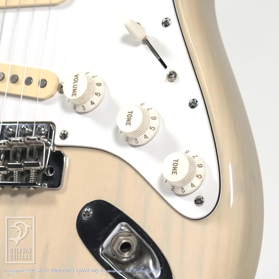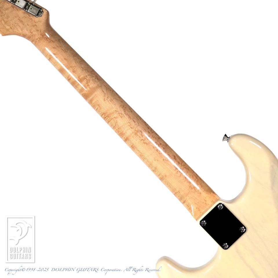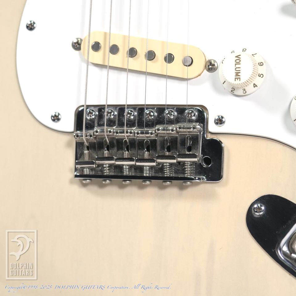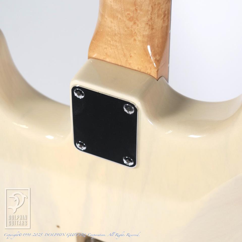 清潔感あふれるホワイトブロンドカラーにダークローズ指板の組み合わせが美しく、クラシックなスタイルながら高級感のあるルックスが魅力です。ボディのエッジやネックグリップなどの仕上げの美しさからも技術力の高さが感じられます。