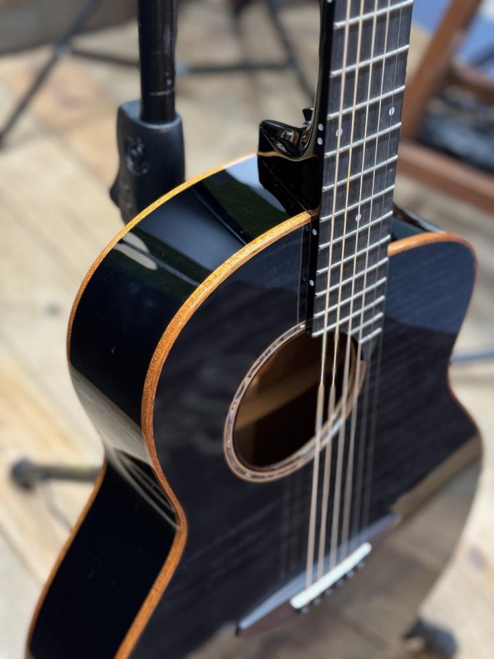 41インチの薄型ボディのエレアコで取り回しが良く、演奏性も快適です。