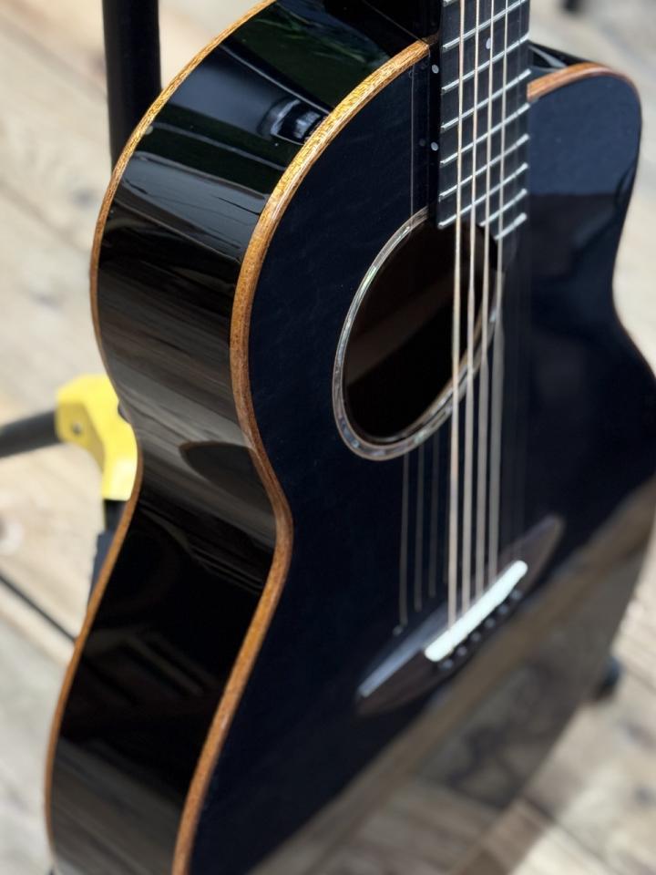 41インチの薄型ボディのエレアコで取り回しが良く、演奏性も快適です。