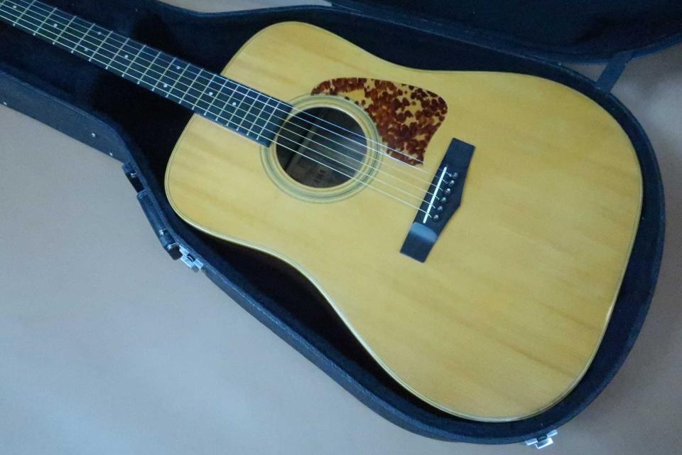 トップにはジャーマン・スプルース単板、サイド&バックにはローズウッド単板、グローバーペグ、本鼈甲ピックガード、サウンドは、独自の変形Xブレイシングとファンブレイシングの組み合わせが採用され逸品です。