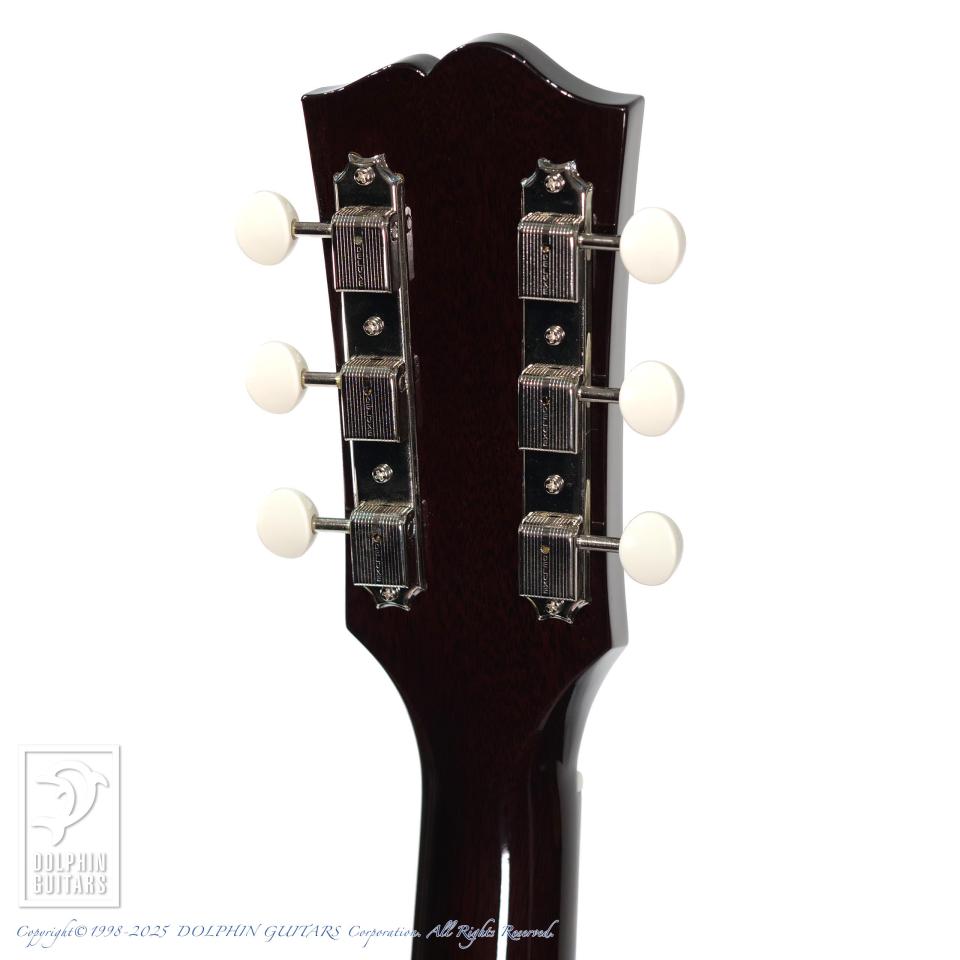 ヴィンテージギブソンでは39mmナローネックと言えばアジャスタブルサドルがセットの仕様ですが、ピエゾピックアップ需要の高まりや、重みのあるサウンドを求め、ノーマルブリッジにカスタムして弾くプレイヤーも多く存在します。そこで、隙間需要に敏感なSWITCHがリリースしたのが本器ナローネック+ノーマルサドルのRSD-45 39mm。こちらのカラーTSB=Tri Sunburstは60年代後半の、はっきりと3色認識できる人気のバーストカラーを再現。