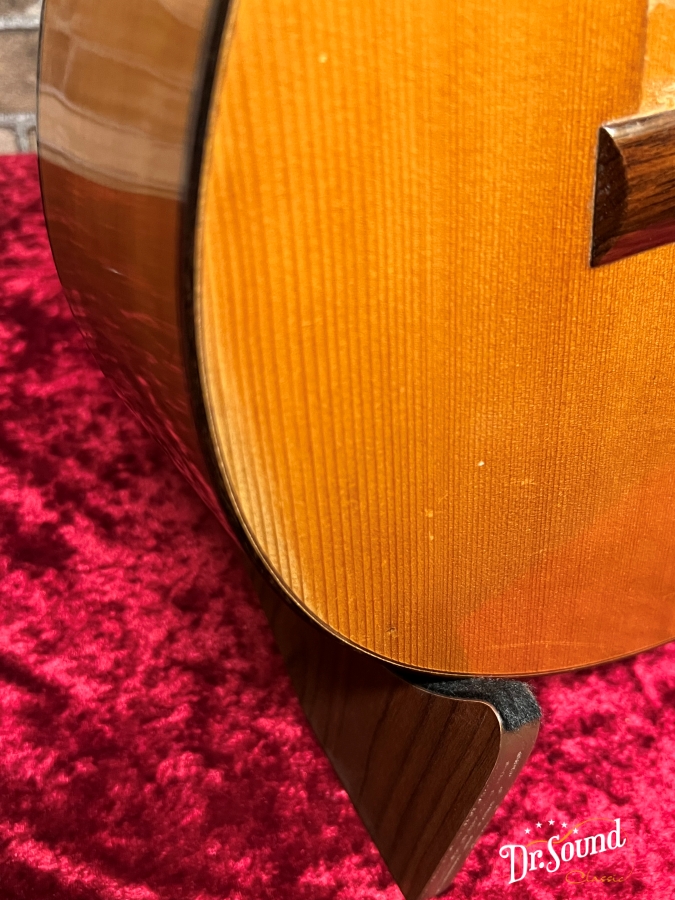 この1976年製は表面板右下に割れ修理があり、当店に入荷直前に国内ギター製作家の方のところで処置して頂いております。あわせて同製作家の方に全体的なチェックもして頂いており、状態に問題はございません。