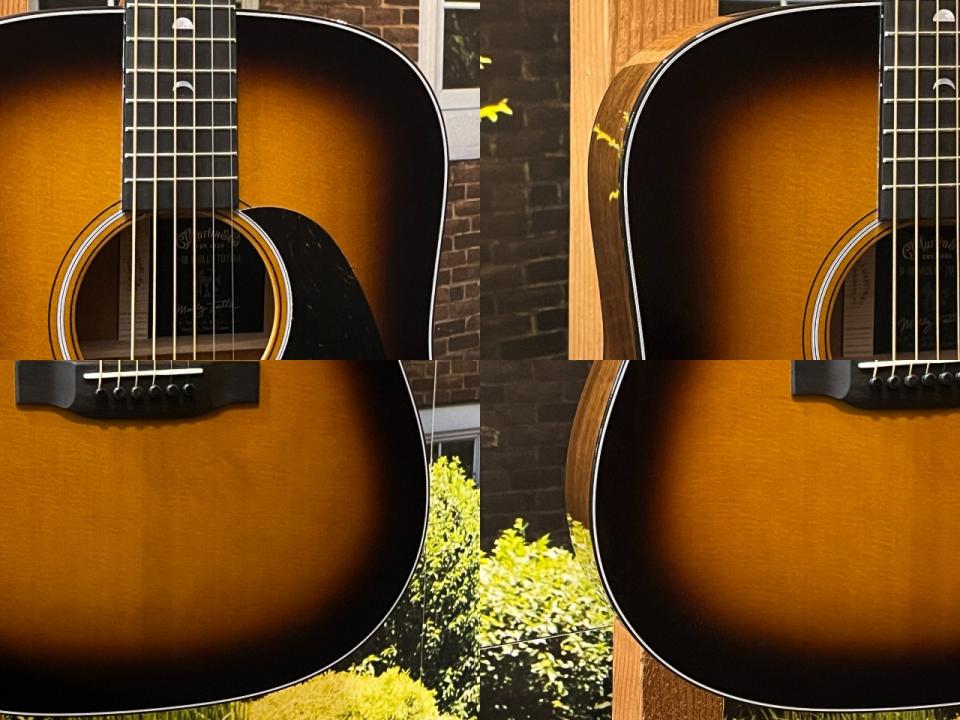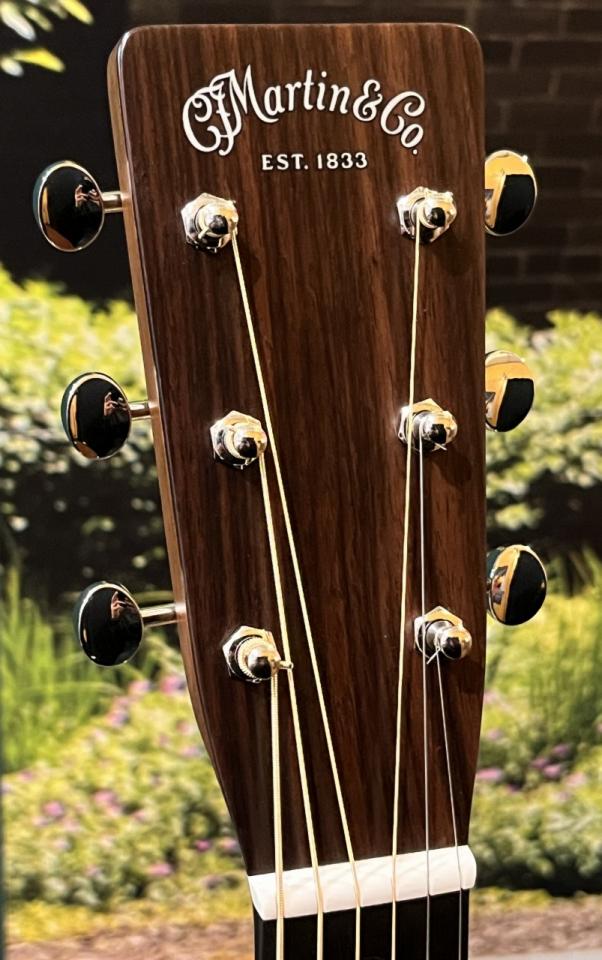 ユニークなディテールとしては、指板に施されたカスタムムーンフェイズインレイ、シルバーのマーティンヘッドプレートロゴ、オーバルチューナーボタン、ヴィンテージサンバーストトップなどが挙げられます。