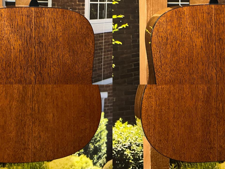本器はモリー自身が所有している1943年製のD-18にインスピレーションを得たモデルとなり、リアシフトのスキャロップドブレース、ブルーグラス・フラットピッカーに高く評価されている 1 11/16インチ(42.9mm)のスリムなナット幅、そして1940年代のネックプロファイルを忠実に再現しています。