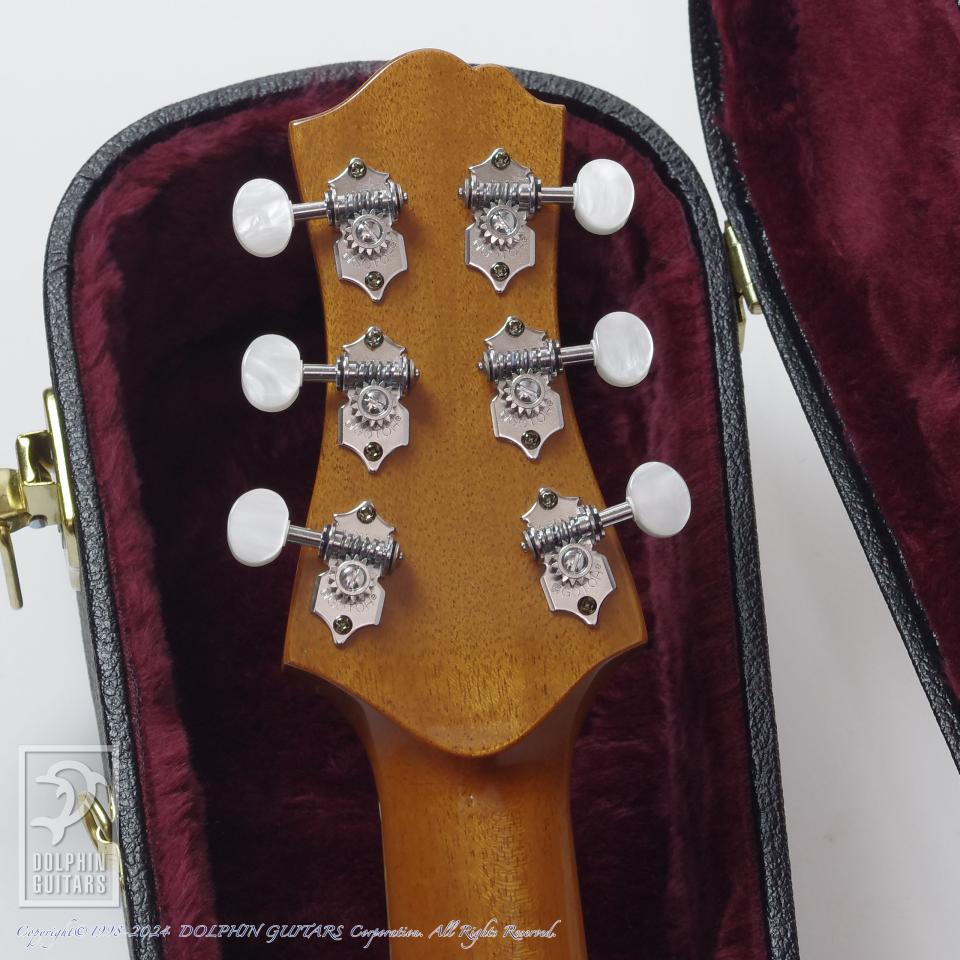 極薄に仕上げられたラッカー塗装の為、ボディにウェザーチェックが見られますが、目立つ傷などは見られません。全体的に細かくチェックするとヘッドやネック・ボディと小さな打痕などは確認できますが、特に気にならないかと思います。当店入荷時 ボディバックに僅かなクラックが見られたため補修しておりますが、補修痕はほとんどわからないほどに仕上がっております。その他 修理・改造履歴はありません。このまま安心してお使いいただけます。