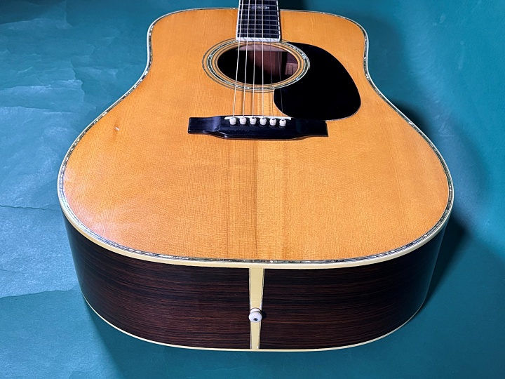 同じ年代のD-45と比較しても、やや鳴りが軽い印象はあるものの、共通するクオリティーの高いトーンで鳴ります。