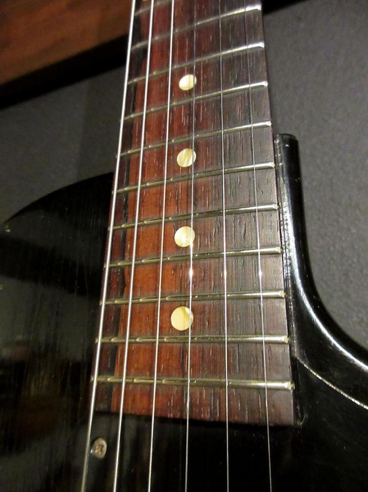 元々はスチューデントモデルとして誕生したLes Paul Junior、マホガニーボディーにP-90を一基マウントしたシンプルな構造ですがラップアラウンドブリッジのもたらす絶妙なテンション感、豊かな生鳴りは50年代ギブソンならではのクラフトマンシップや当時の良質な木材がもたらすパワーを存分に感じさせてくれます。今回入荷の1本はサンバーストのリム部分に太目に吹かれたブラックがとてもクールな個体。パーツ類はフレットも含めフルオリジナルで非常に良いコンディションをキープしております。歪ませるとP-90のレンジ感はそのままに、芯のある絶妙なドライブ感のあるサウンドをアウトプット。数多のロックギタリストに愛されてきたことも納得の名機です!ウェイト3.6kg。オリジナルアリゲーター柄チップボードケース付属。