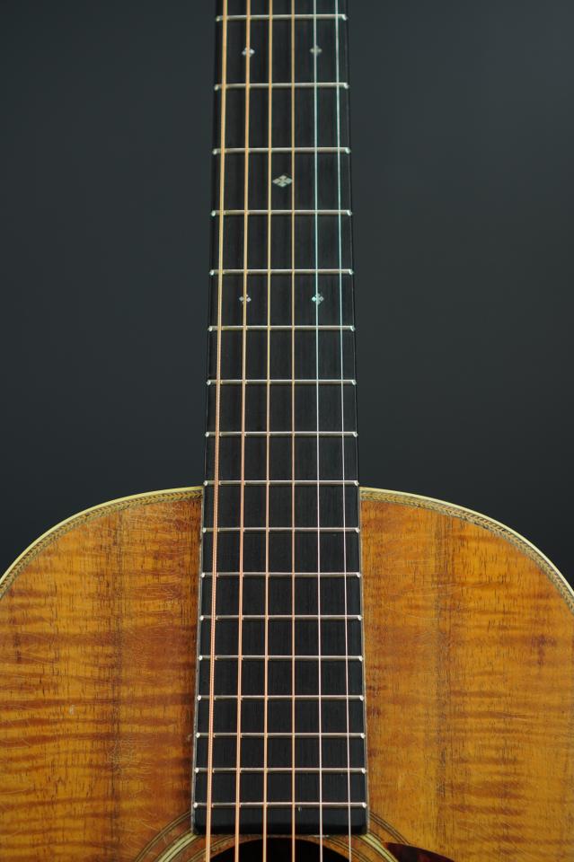 ナイロンから、スティールストリングスに変わっていく過渡期の、MARTIN社の一つの大きな転換期で、20年代の繊細なボディの響きから、30年代のしっかりとした鉄弦に対応に向かって強化されたボディと、ネックのしっかり感は、現代のギターに近い感覚です。