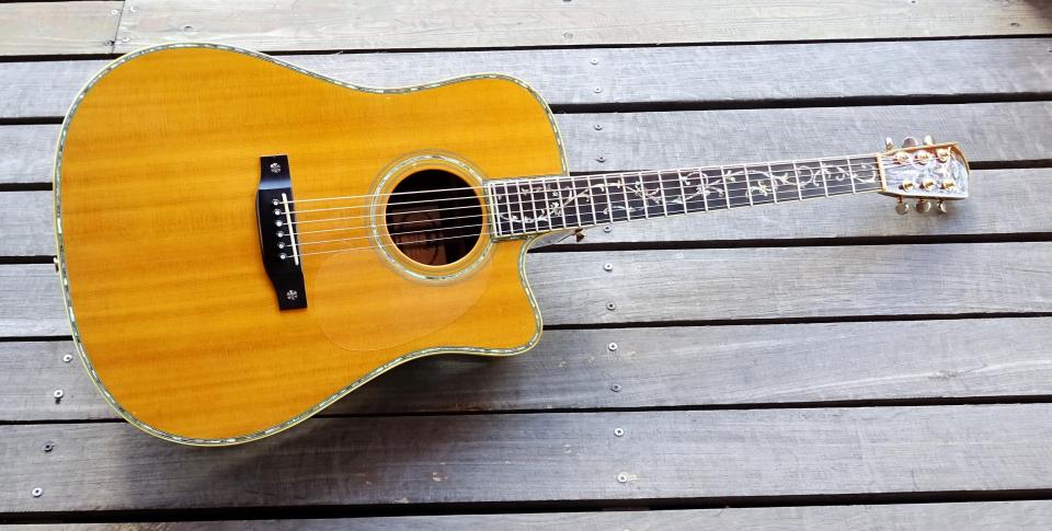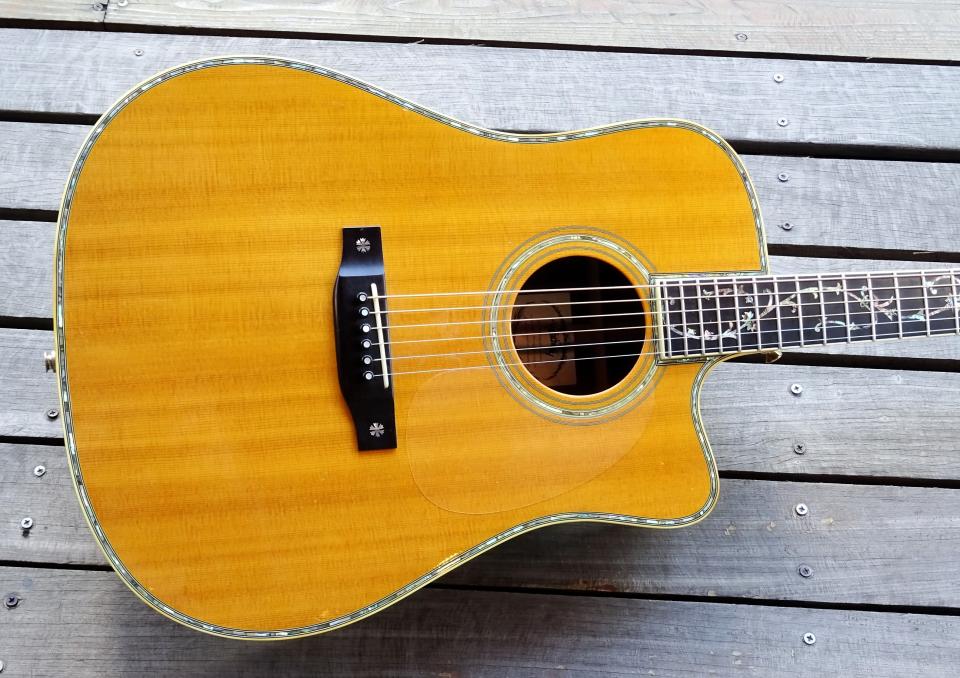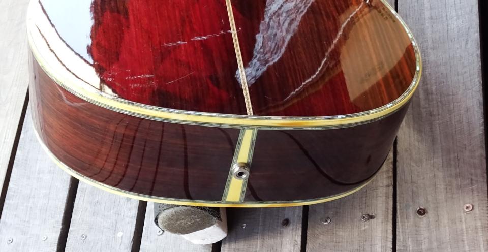 とてもコンディションの良い状態です。トップはシトカスプルース、サイド、バックはローズウッドのオール単板です。スキャロップブレイシングが採用されています。