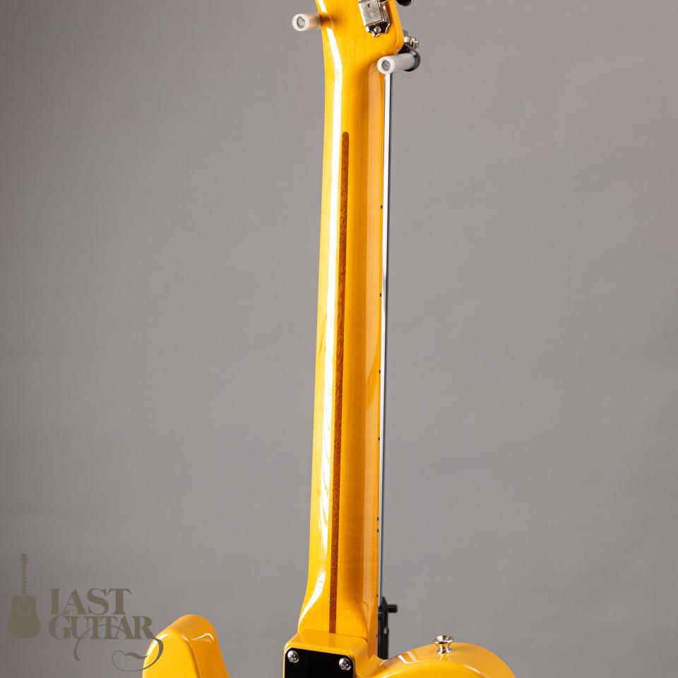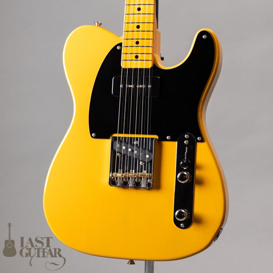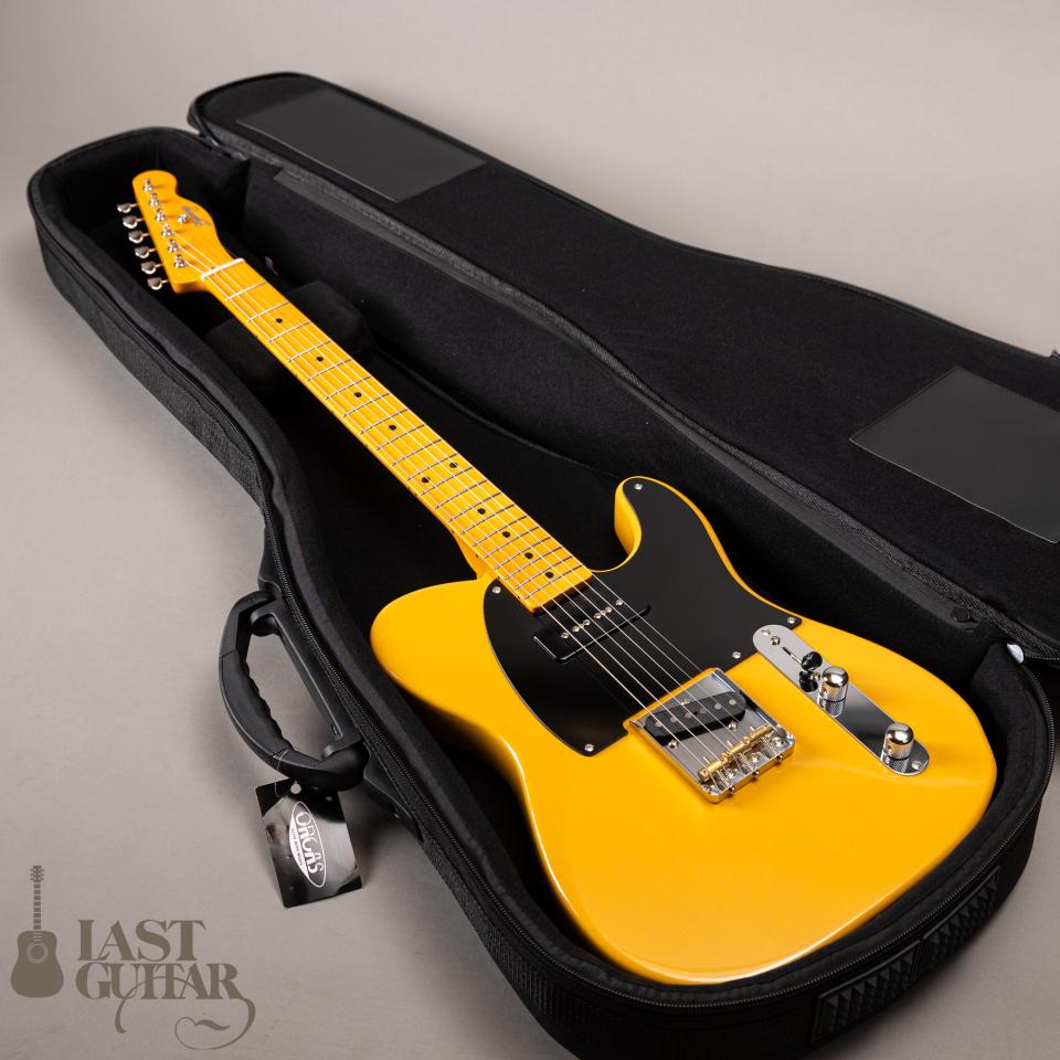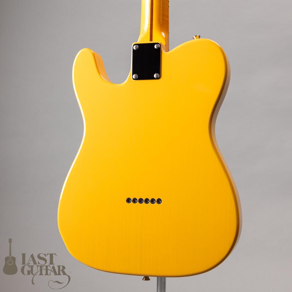 まずなんと言ってもボディーにライトアッシュ材を採用しておりウェイトが約3.1kgとソリッドギターとは思えないほど軽量です。ホロウボディーのギターを使用されている方でもストレスなく演奏をお楽しみいただけます。ルックスに関しましてはまろやかなバタースコッチブロンドカラー、ベークライト素材を使用した5点留めのブラックピックガード、メイプル指板、50年代を彷彿とさせるヴィンテージスタイルで当店のこだわりを詰め込んだルックスとなっております。塗装の質感も良く艶っとしたボディーにブラックガードがマッチしており非常にかっこ良いです。